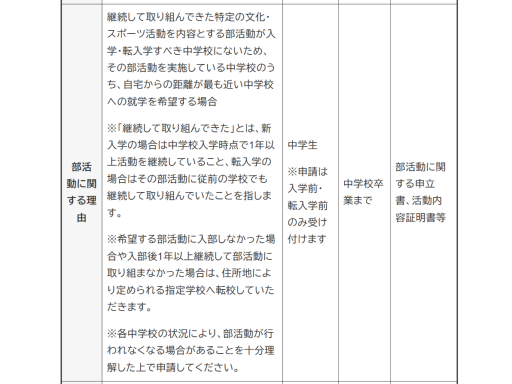 ◆(令和7年11月1日に市教委に要請した指定学校変更の件)名取市ホームページにおいて、指定学校変更の新たな許可基準が公表。「部活動に関する理由」が新たに追加される。