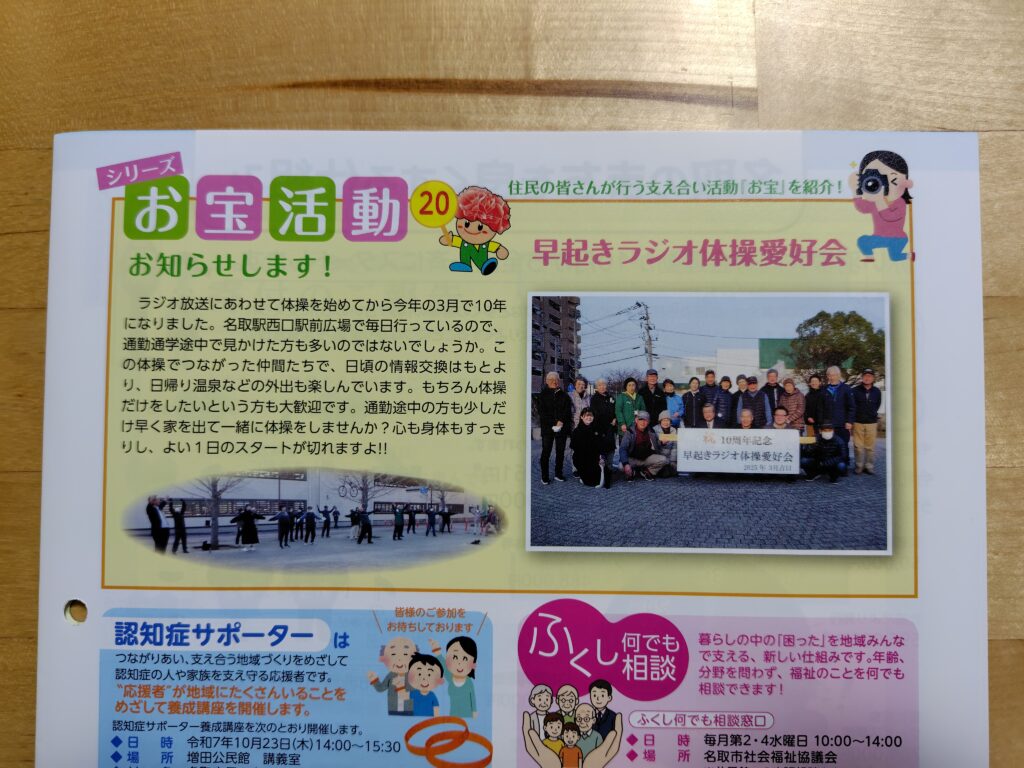 なとり社協だより第95号にの「お宝活動」に、紹介の記事が掲載されました。